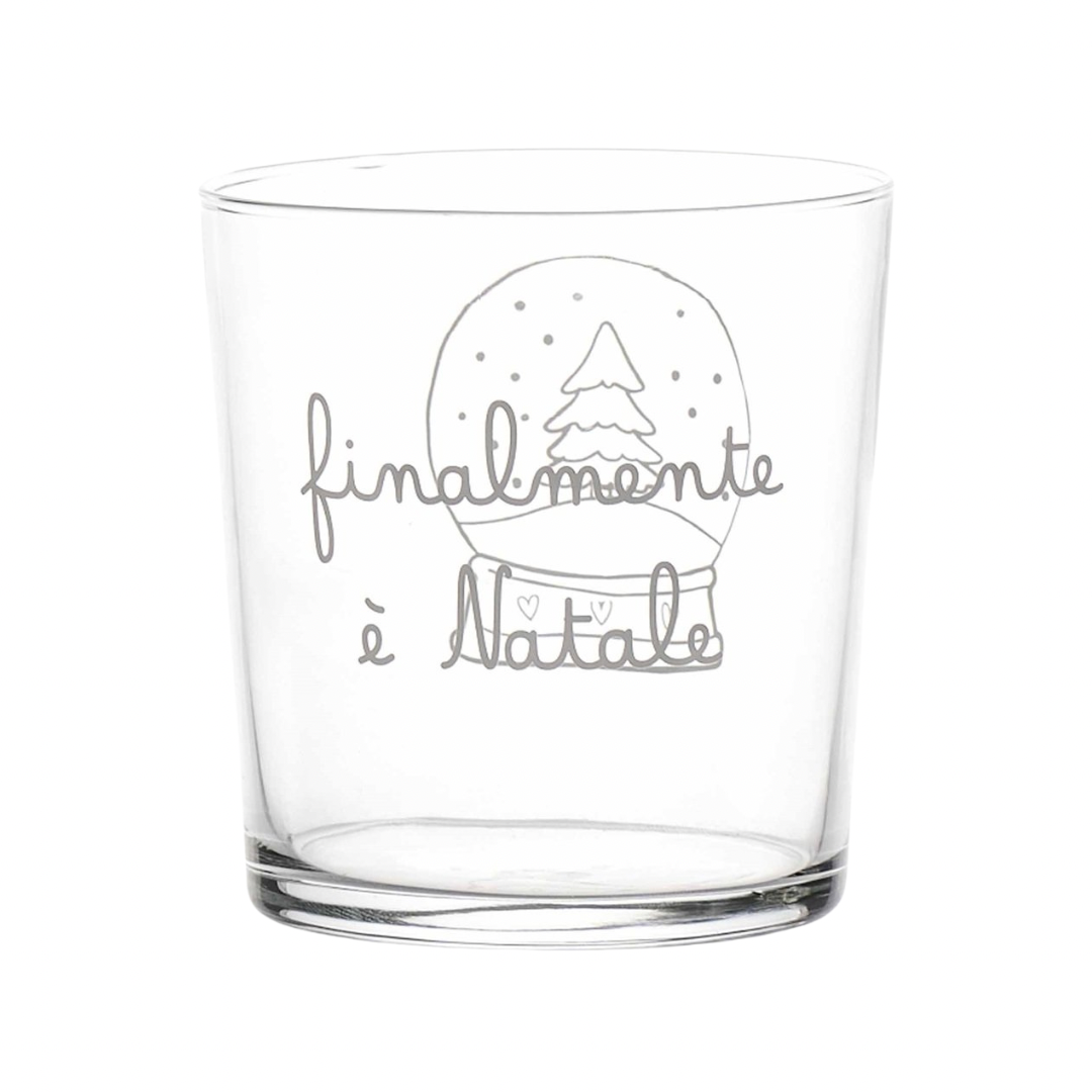 Bicchiere acqua serigrafato con la scritta Natale è famiglia in colore bianco.