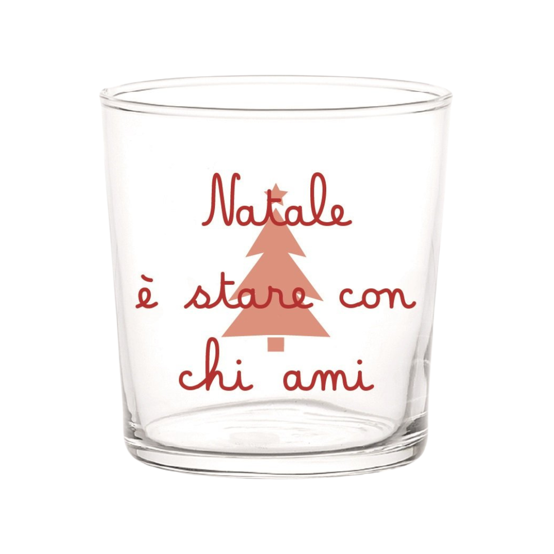 Bicchiere acqua serigrafato con la scritta Natale è stare con chi ami in colore rosso.