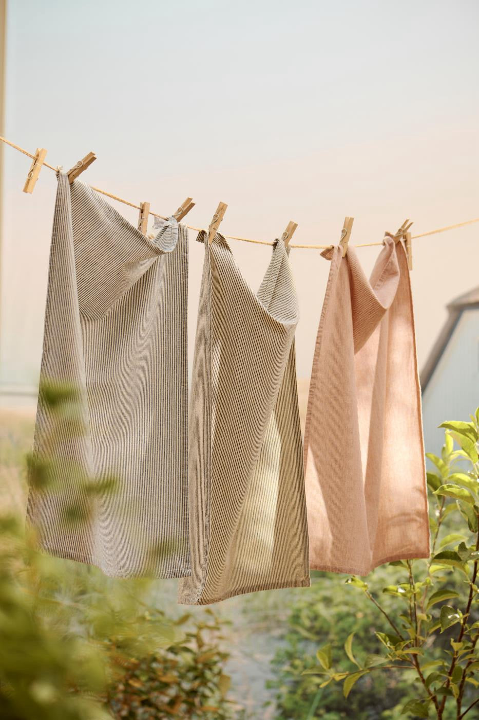 Bellissimo strofinaccio da cucina a base naturale con righe verticali di colore nero, di Ib laursen.