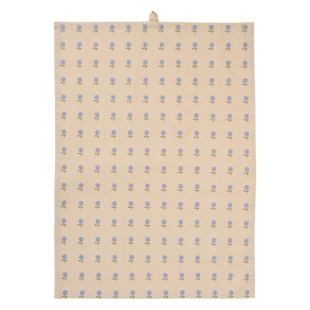 Bellissimo strofinaccio da cucina a base naturale con fiorellini di colore azzurro, di Ib laursen.