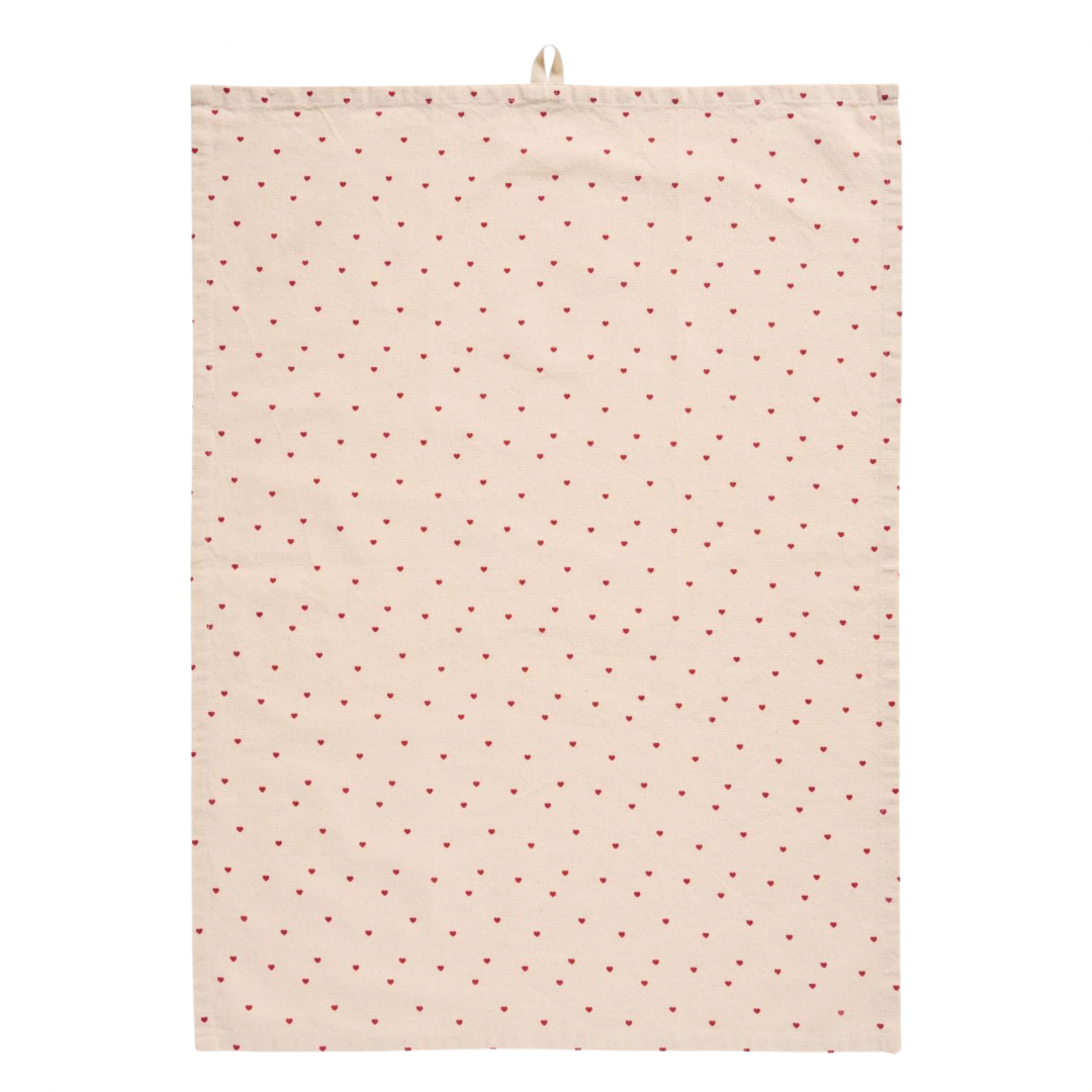 Bellissimo strofinaccio da cucina a base naturale con tantissimi cuoricini di colore rosso, di Ib laursen.