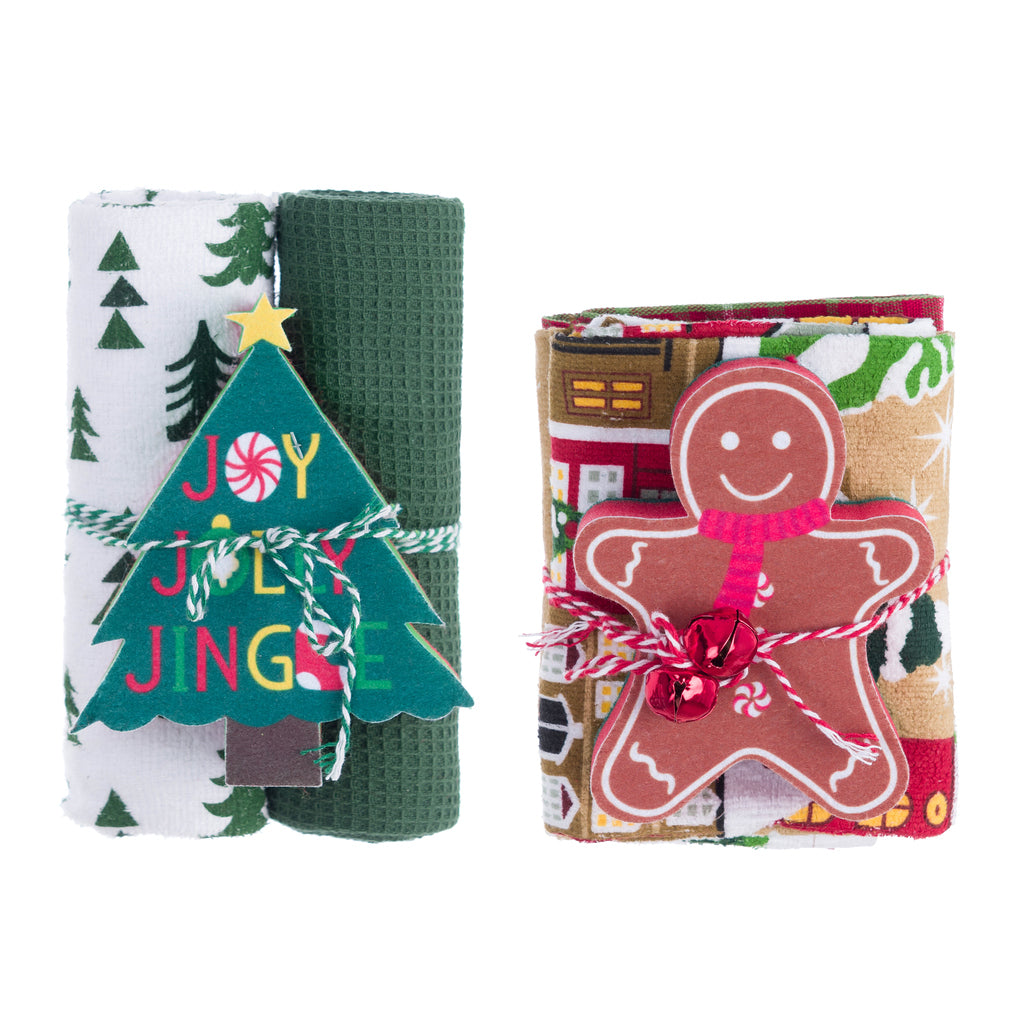 Set di 2 canovacci con spugna abbinata, della collezione Storie di Natale di Blanc Mariclò.
