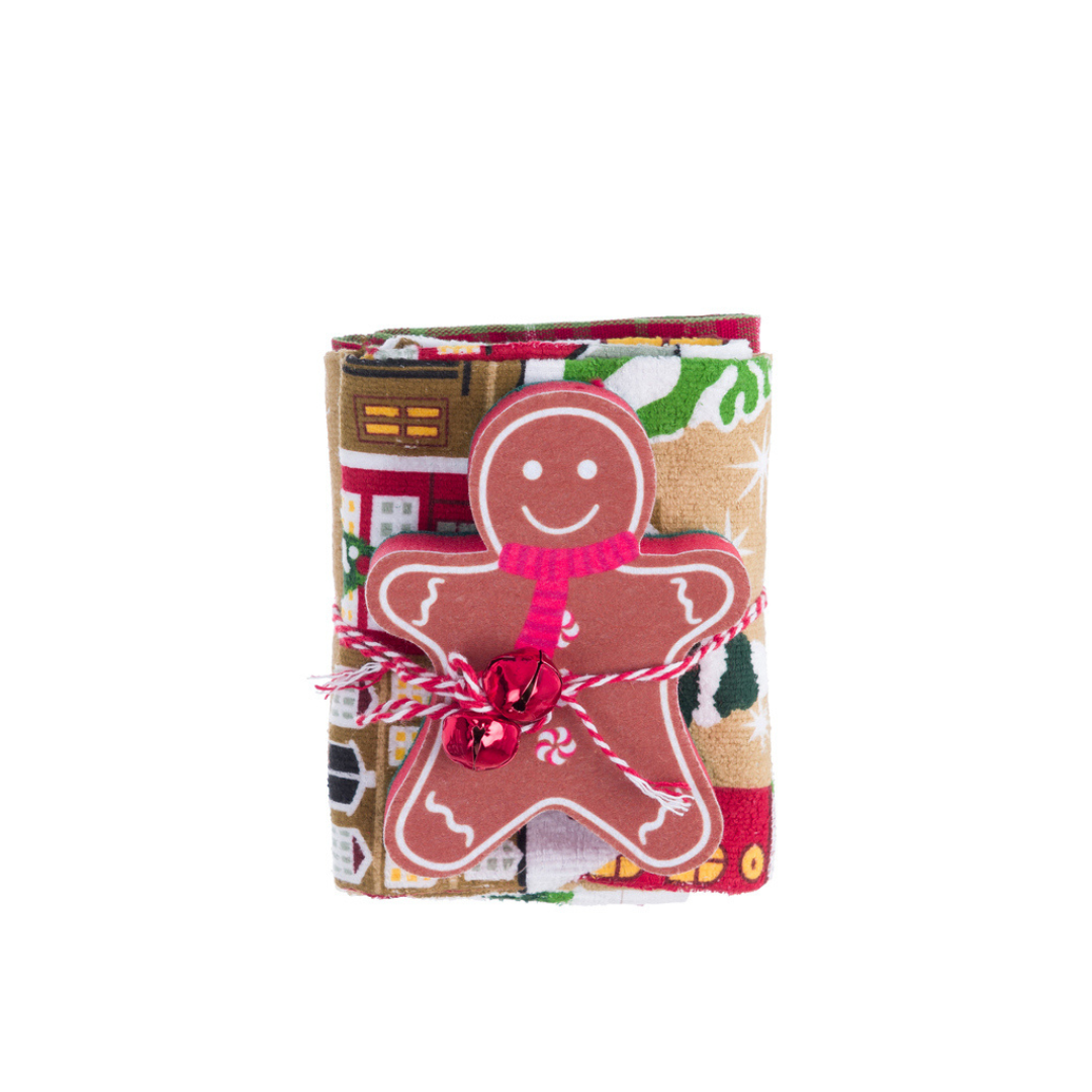 Disponibile sui toni del verde con spugnetta ad alberello o nei toni del rosso con spugnetta a omino di pan di zenzero.