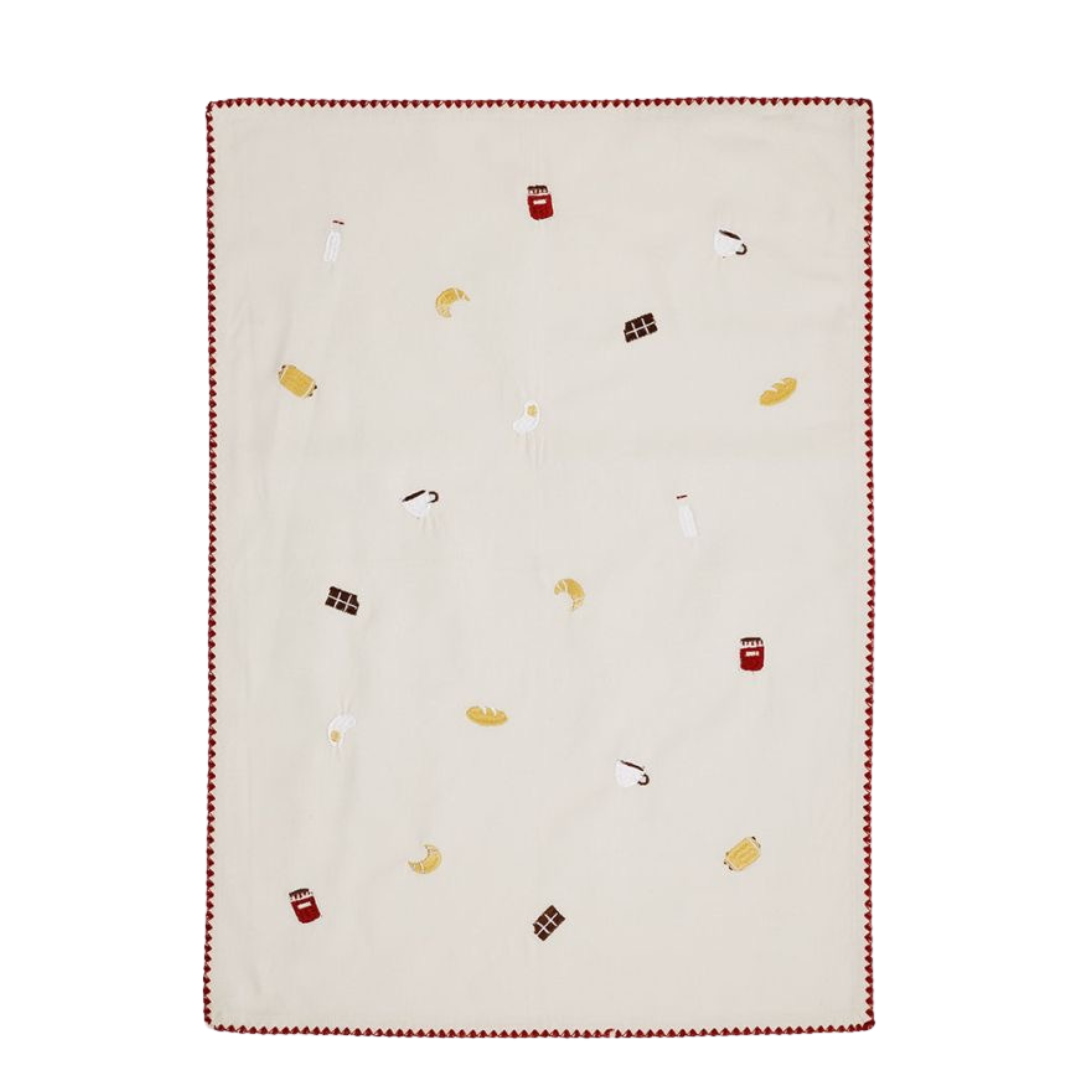 Canovaccio da cucina a base naturale con tanti ricami golosi, della collezione Reveil Gourmand di Jardin d' Ulysse.