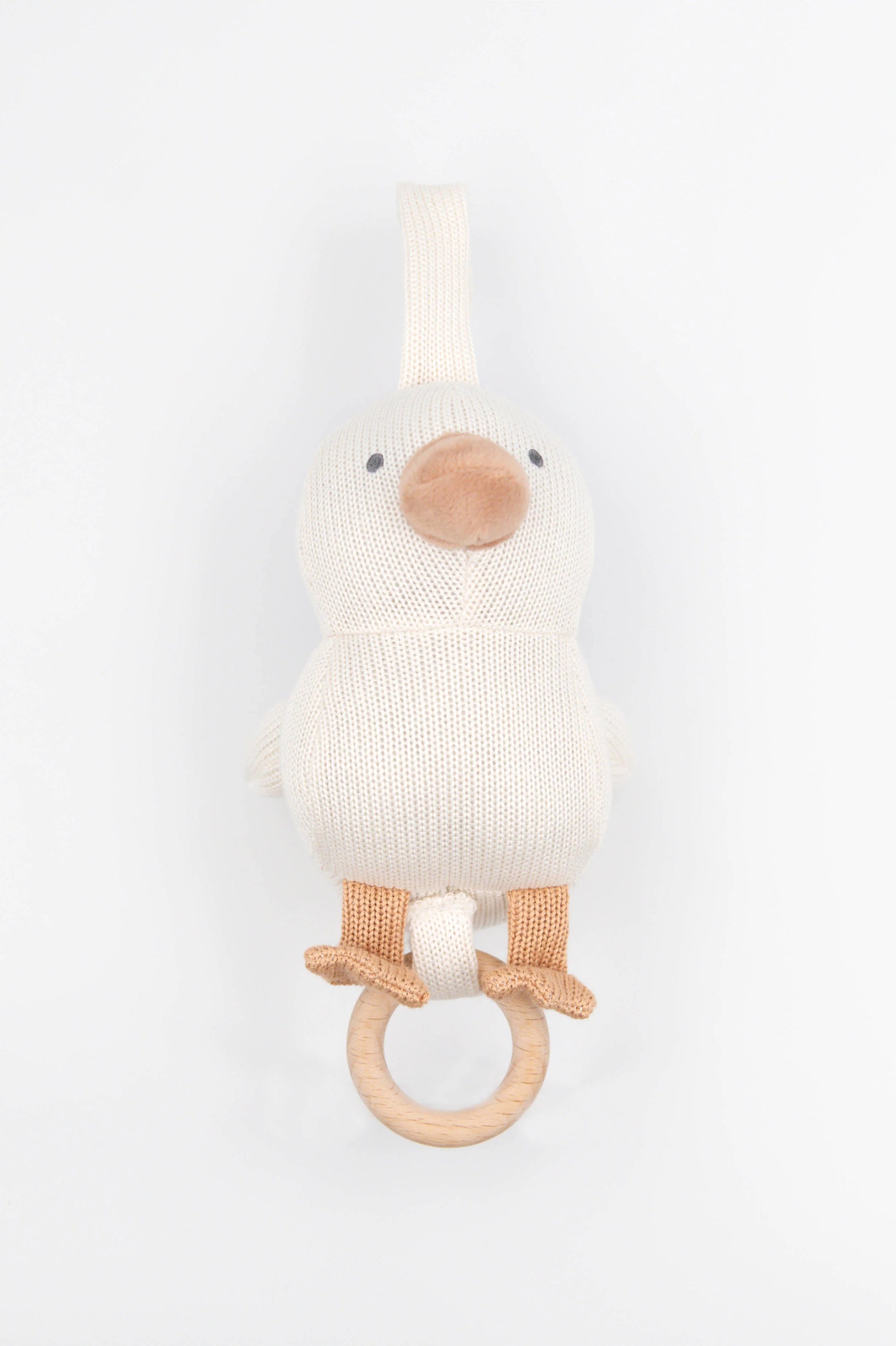 Un dolcissimo carillon a forma di paperella, pensato per accompagnare i momenti di relax e la nanna con una melodia delicata. Realizzato in tessuti soffici e piacevoli al tatto, è dotato di un anello in legno che, una volta tirato, attiva la musica.