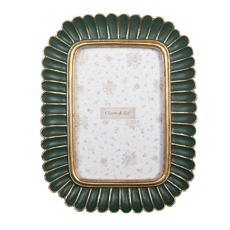 Portafoto decorativo in colore verde e oro, perfetto per presentare i tuoi preziosi ricordi.