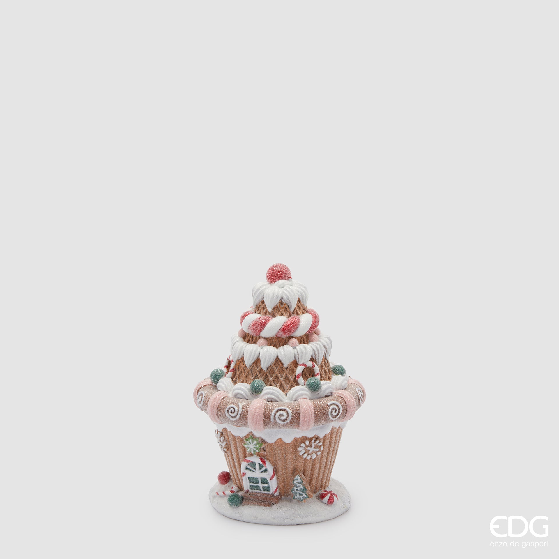 Torta di marzapane decorativa da appoggio, con base a forma di cup cake dall' effetto zuccherato.