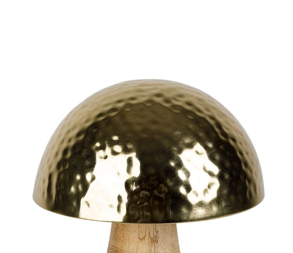 Splendido fungo decorativo colore naturale con cappello dorato, per creare magnifici ed incantevoli allestimenti nella tua casa.