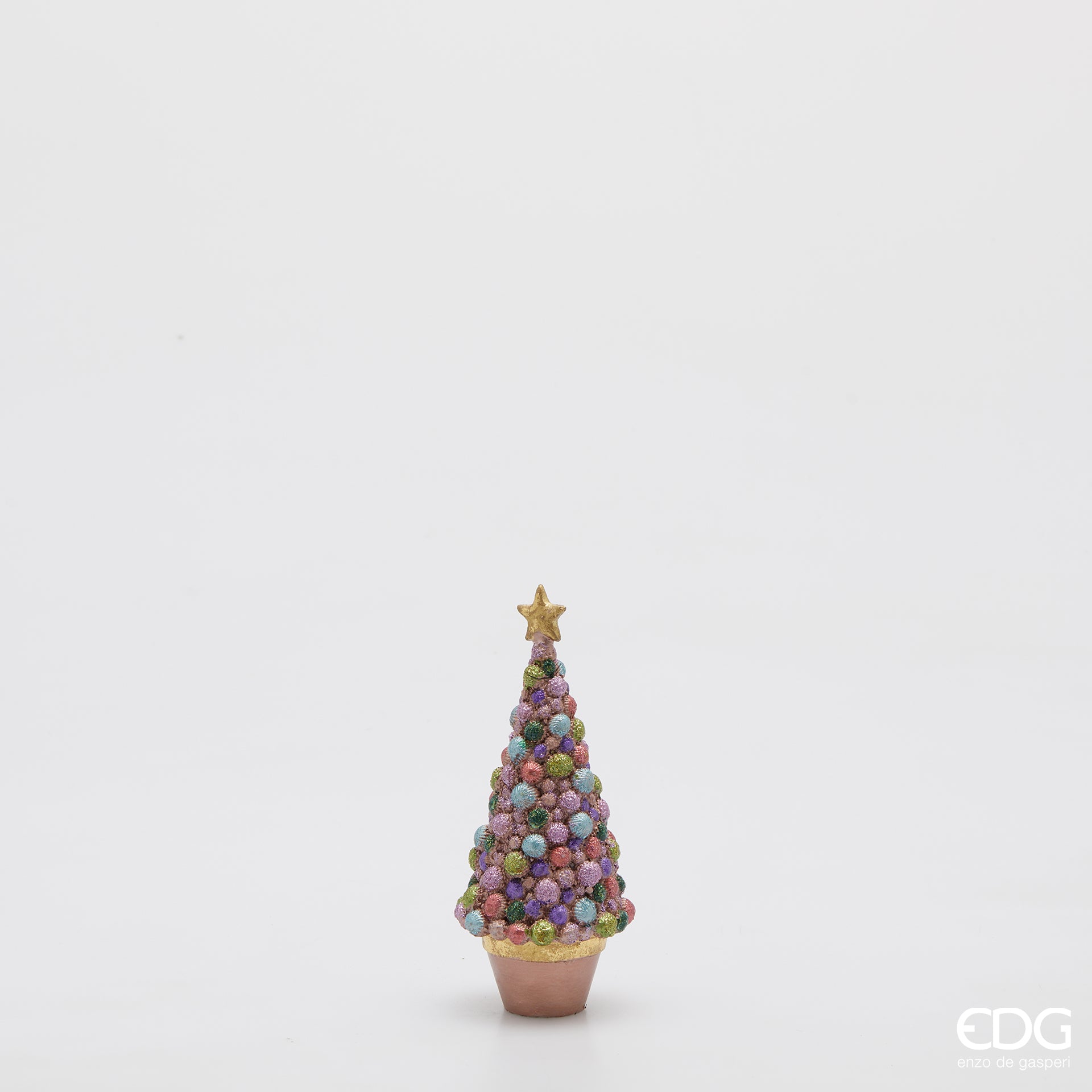 Albero decorativo da appoggio formato da tante palline glitterate sui toni del rosa, del verde e dell' azzurro.