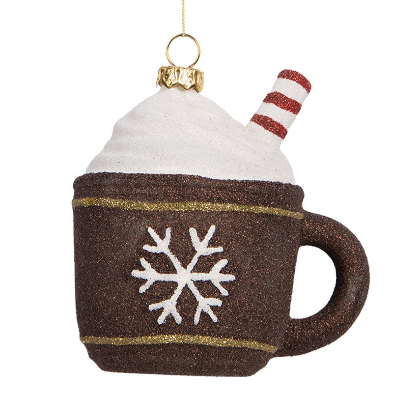 Decorazione raffigurante una tazza con panna montata e bastoncino di zucchero, ideale per decorare l'albero o più semplicemente da utilizzare come decorazione per la casa durante le feste.