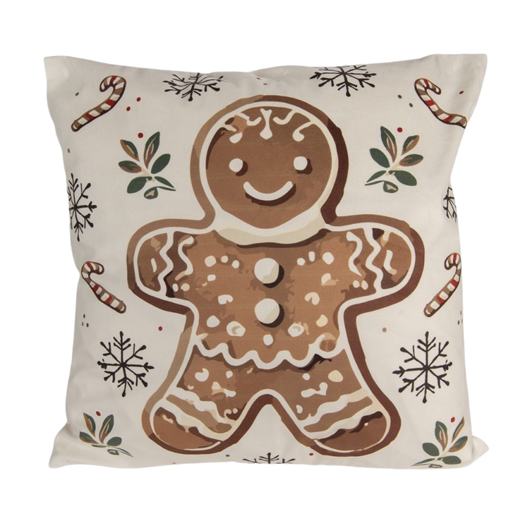 Federa per cuscino avorio, con Gingerbread, rametti, candy cane e fiocchi di neve che si chiude con una pratica cerniera.