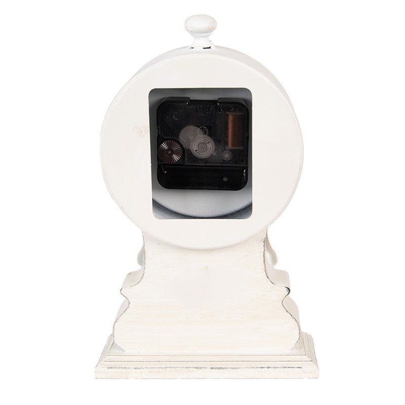 Orologio rotondo da appoggio, con base, in colore bianco anticato, senza tempo ed elegante.