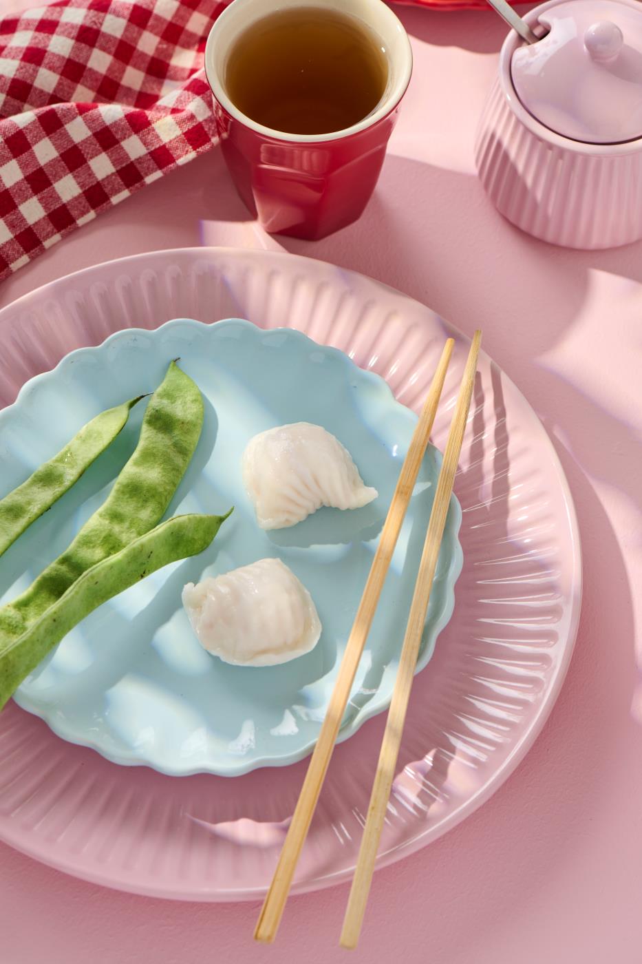 Piatto rotondo dal bordo ondulato, di colore azzurro, di Ib Laursen.
