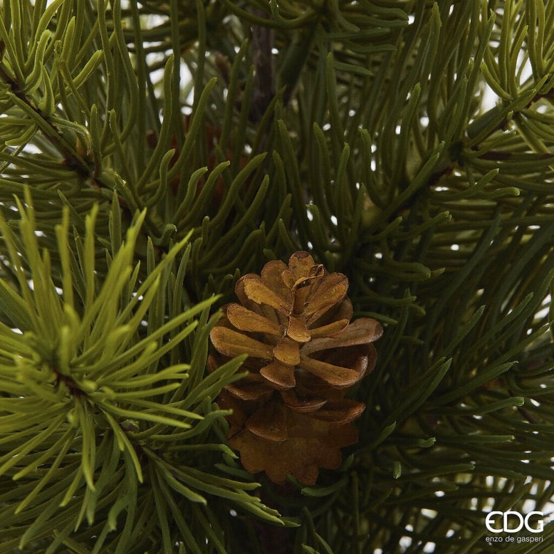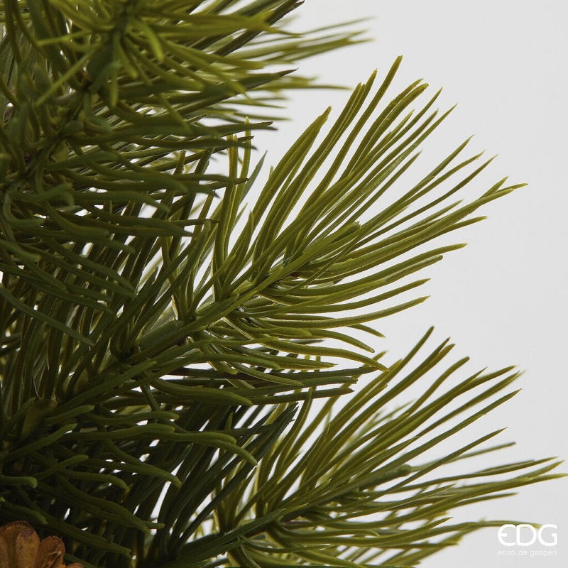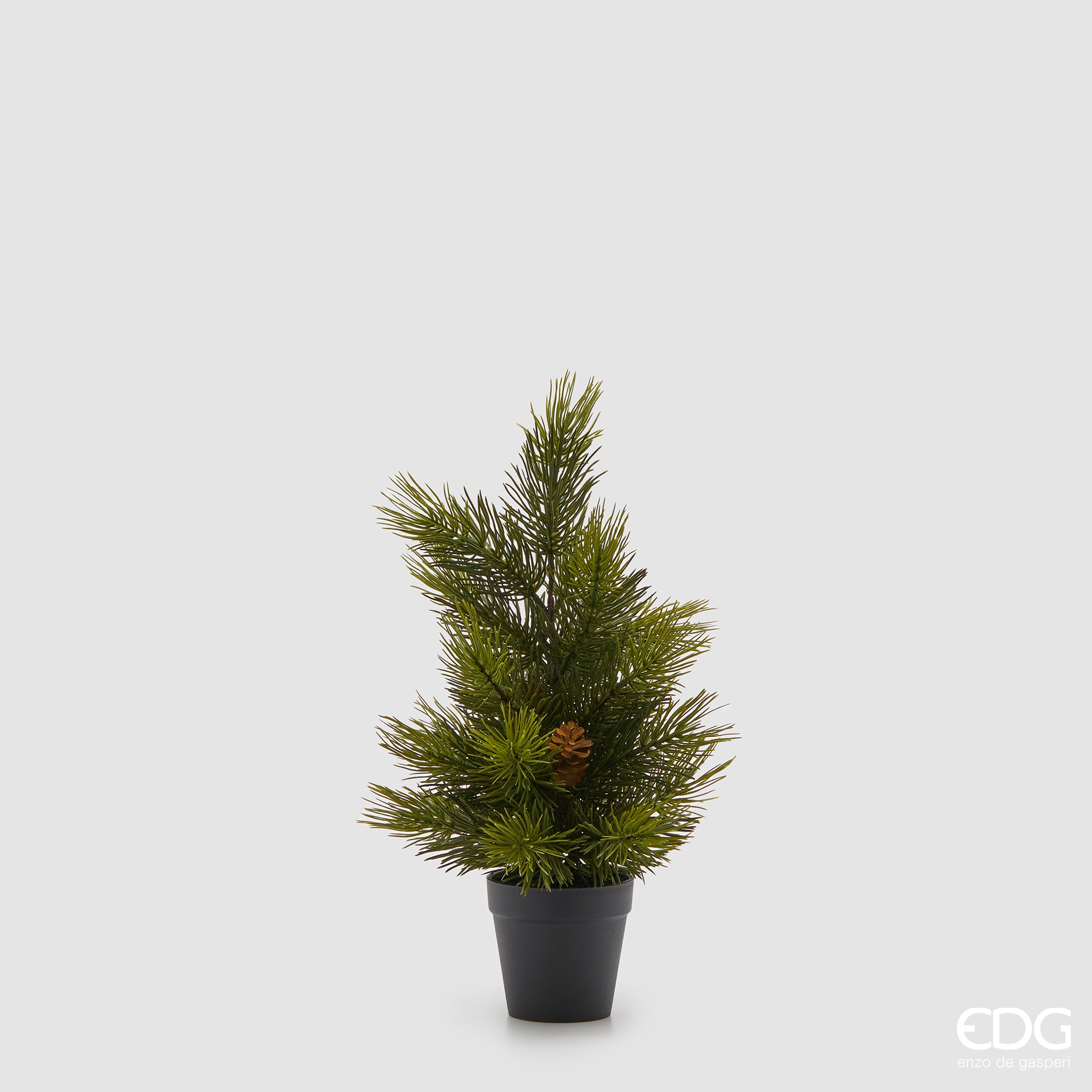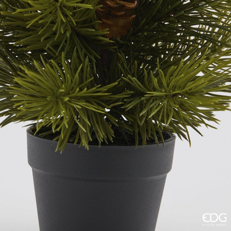 Pino verde con pigne e vaso nero.