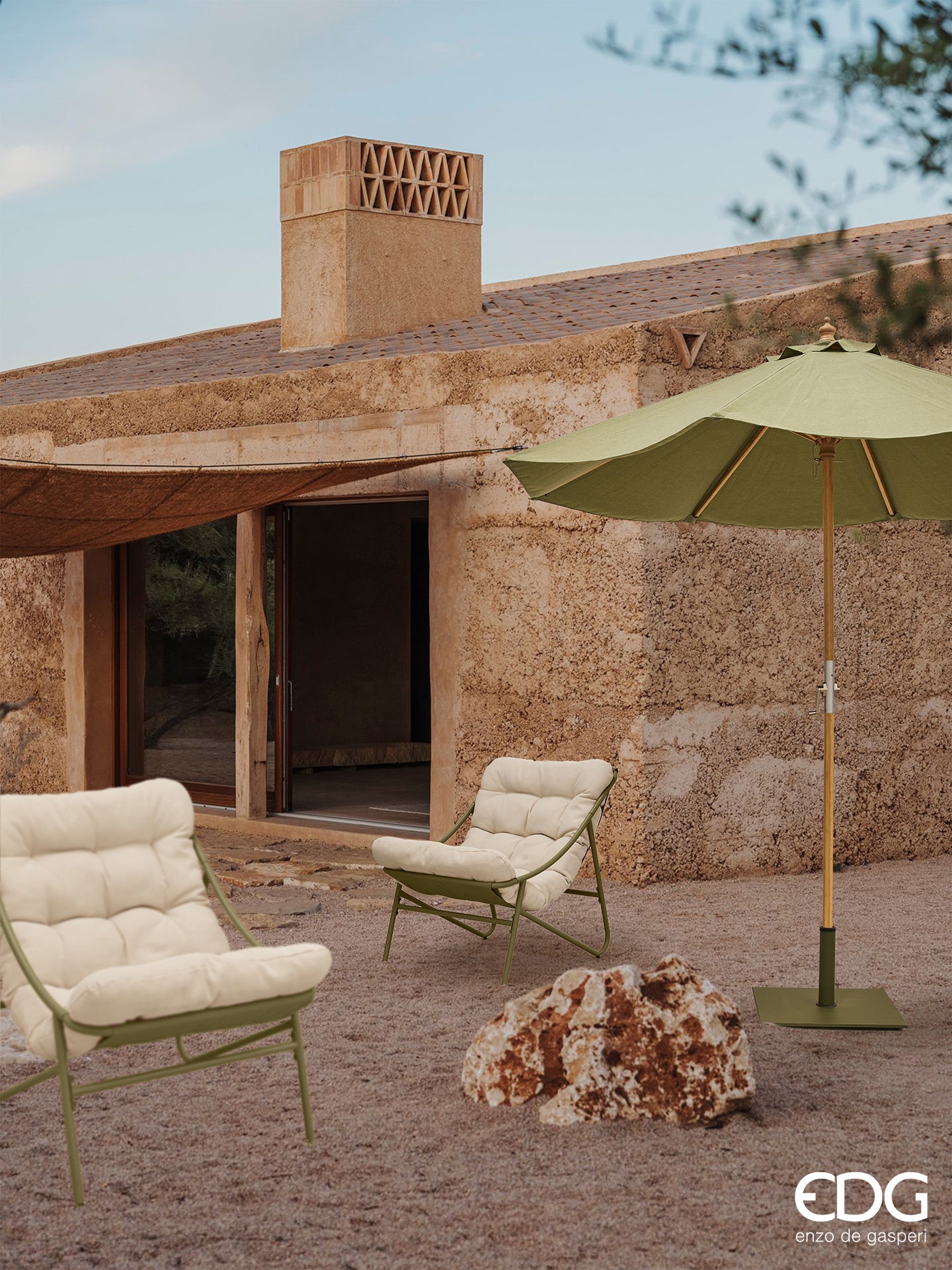 Poltrona Capitonnè imbottita, dallo schienale e dalla seduta molto confortevoli, in colore verde.