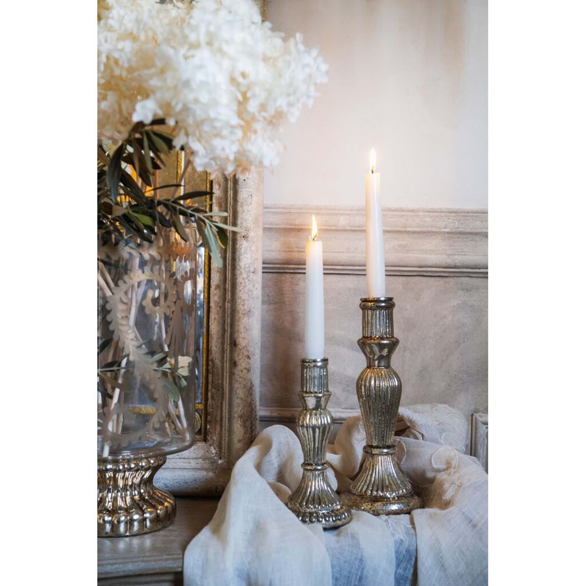 Porta candela decorativo della collezione Nocturna Aurea di Blanc Mariclò, in vetro anticato dall' effetto vintage.