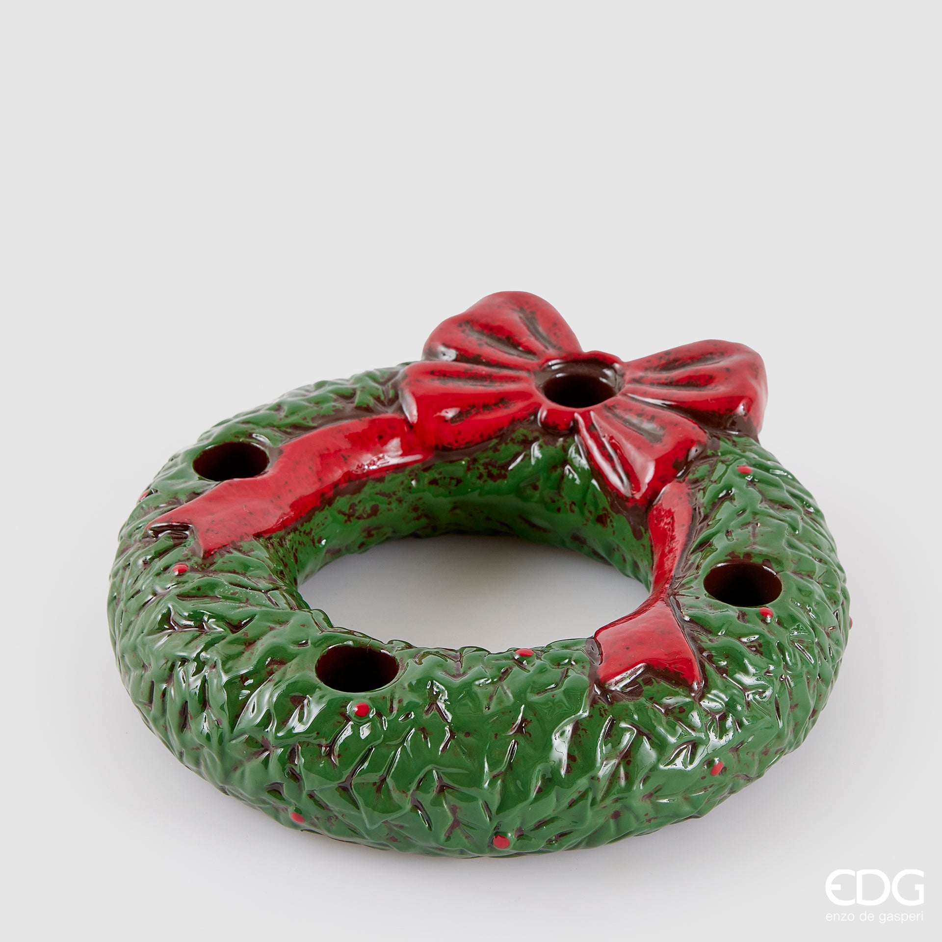 Aggiungi un tocco raffinato al tuo interno con questo adorabile porta candela a quattro posti a forma di ghirlanda con fiocco rosso.