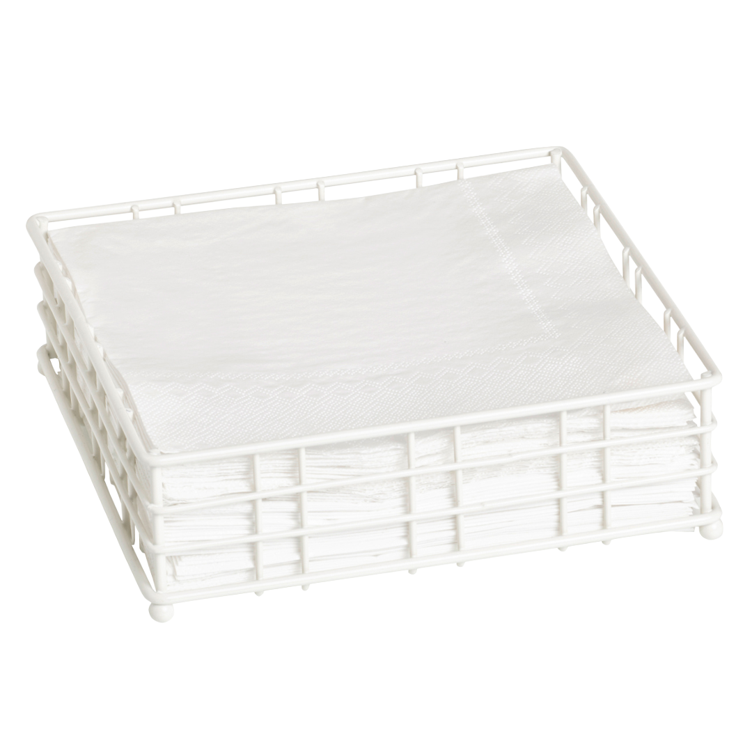 Portatovaglioli in colore bianco, adatto ai tovaglioli con formato lunch quadrati da 33x33 cm.