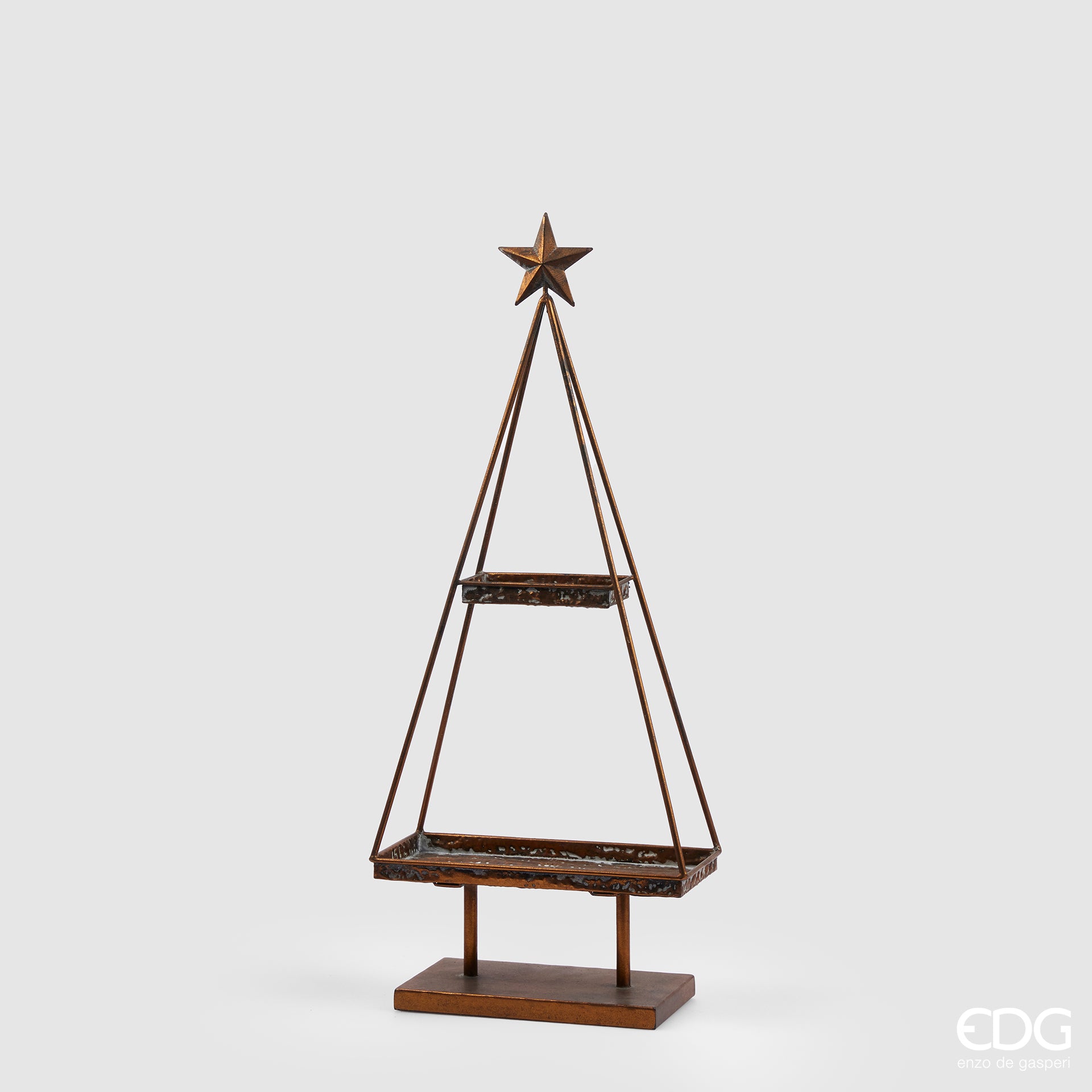 Splendido scaffale da appoggio a forma di pino, con stella, color bronzo, con due ripiani.