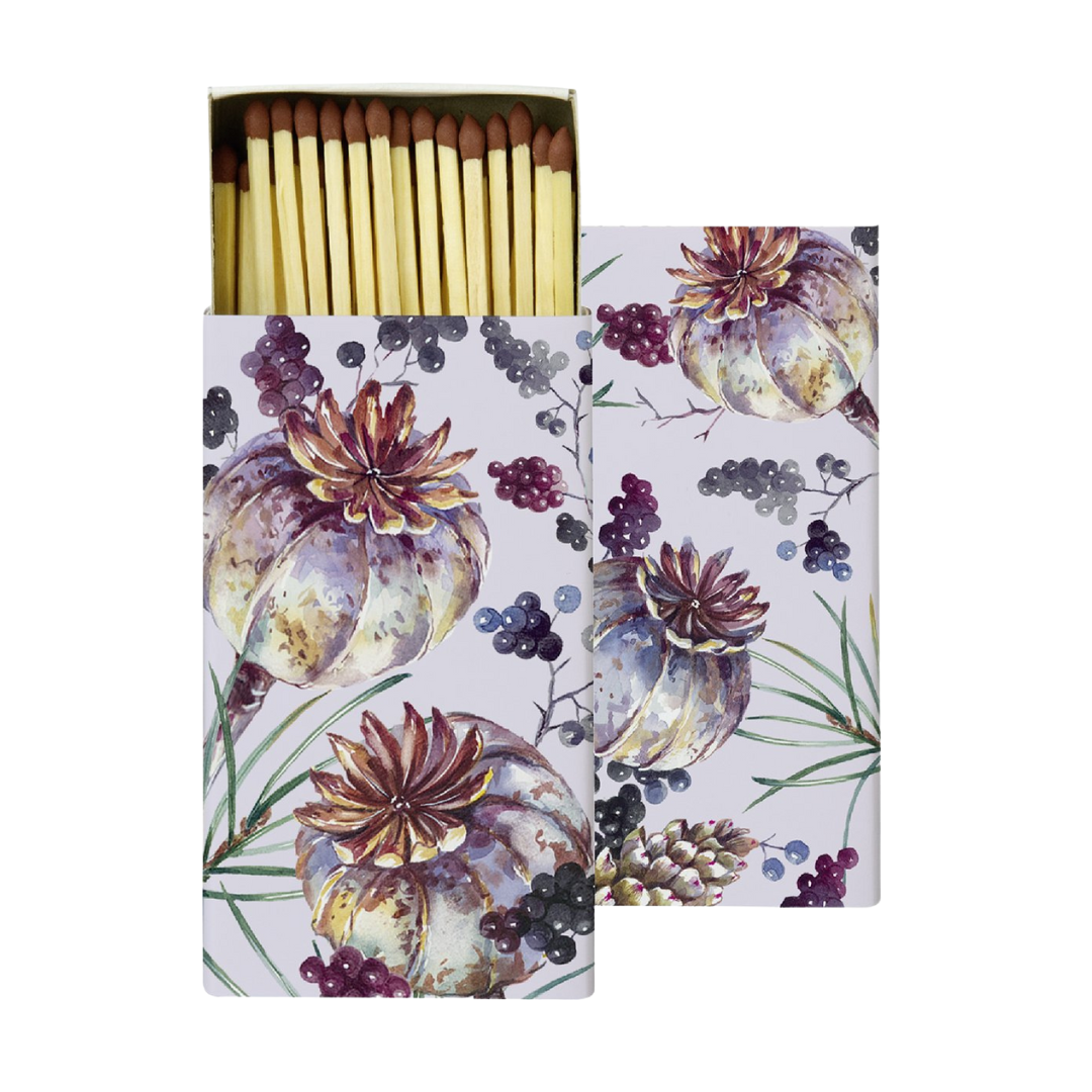 Scatola in carta decorata con fantasia floreale, contenente 45 fiammiferi.