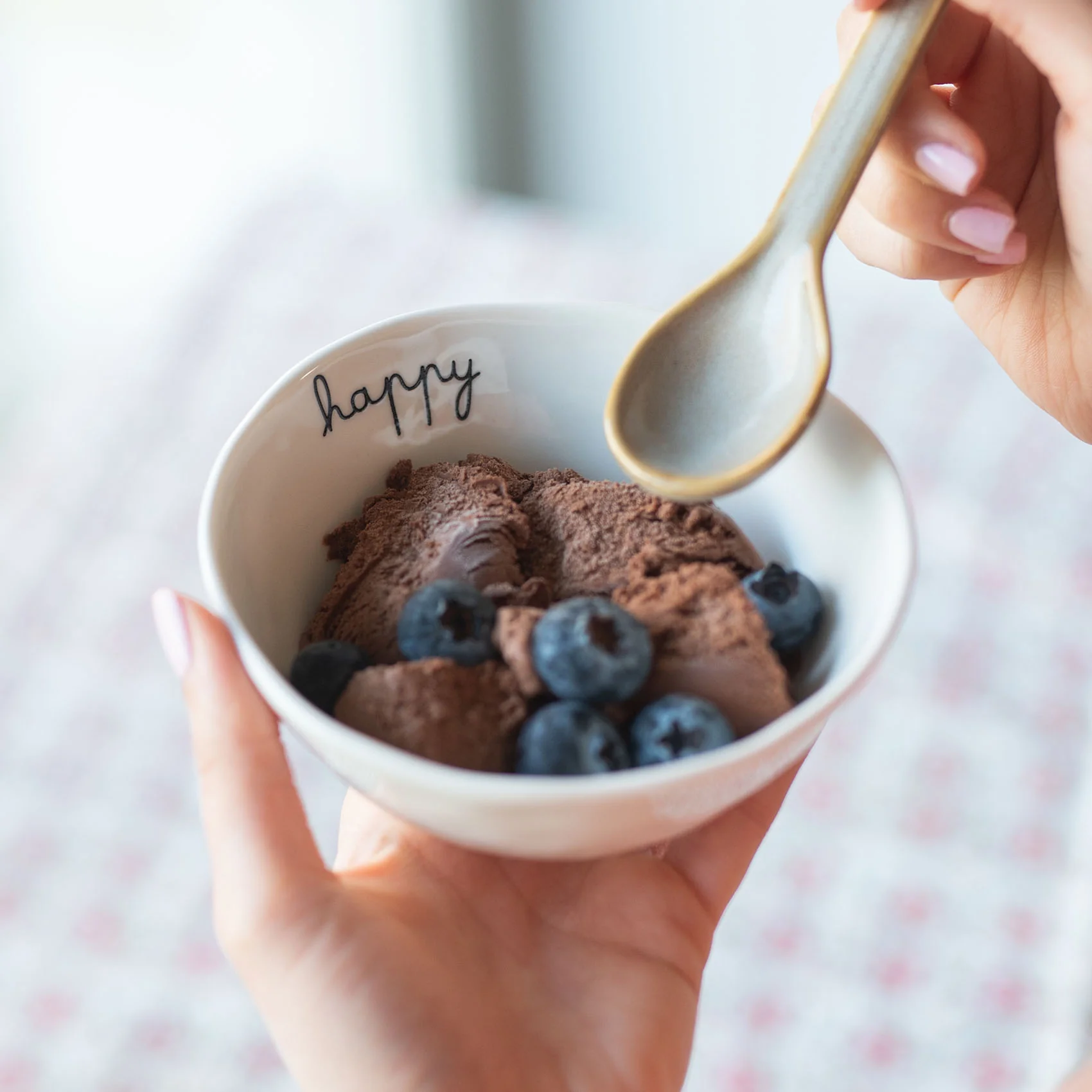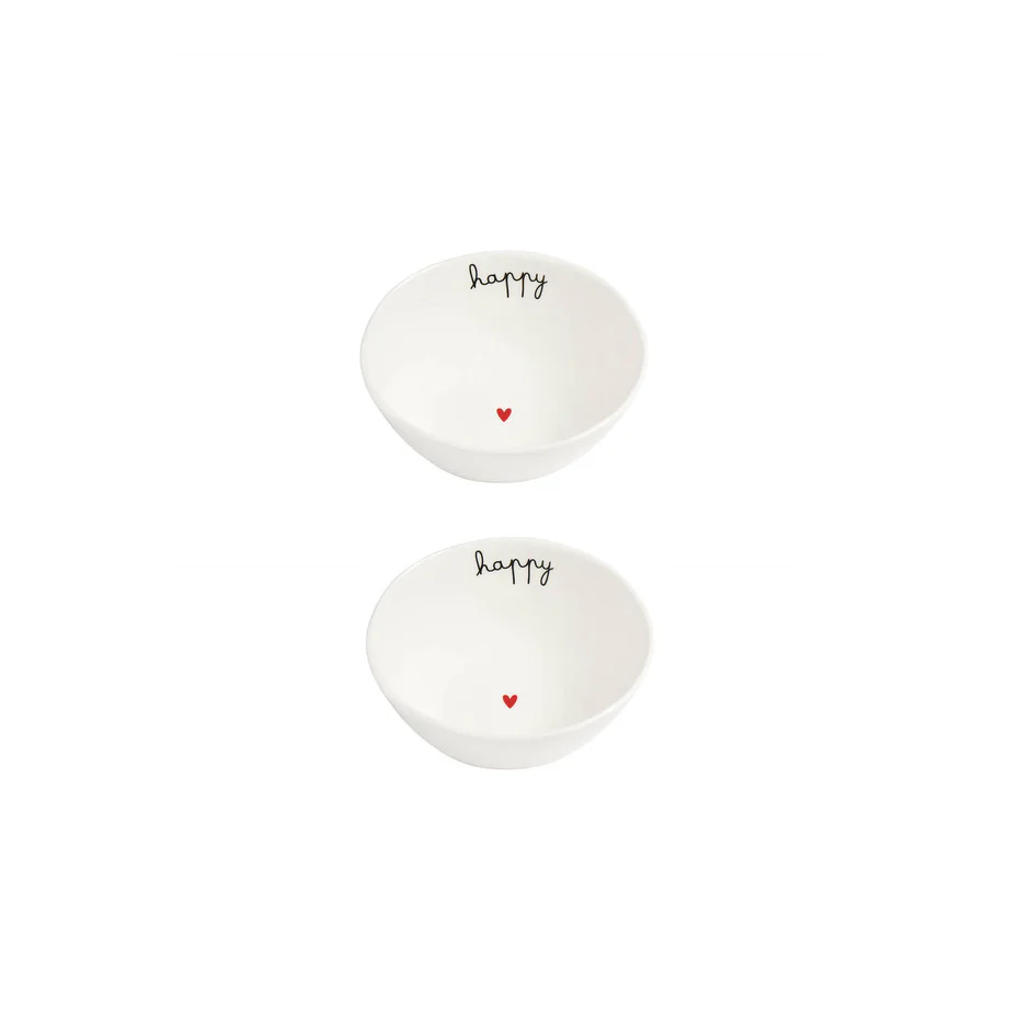 Set 2 Coppette in gres decoro Happy.