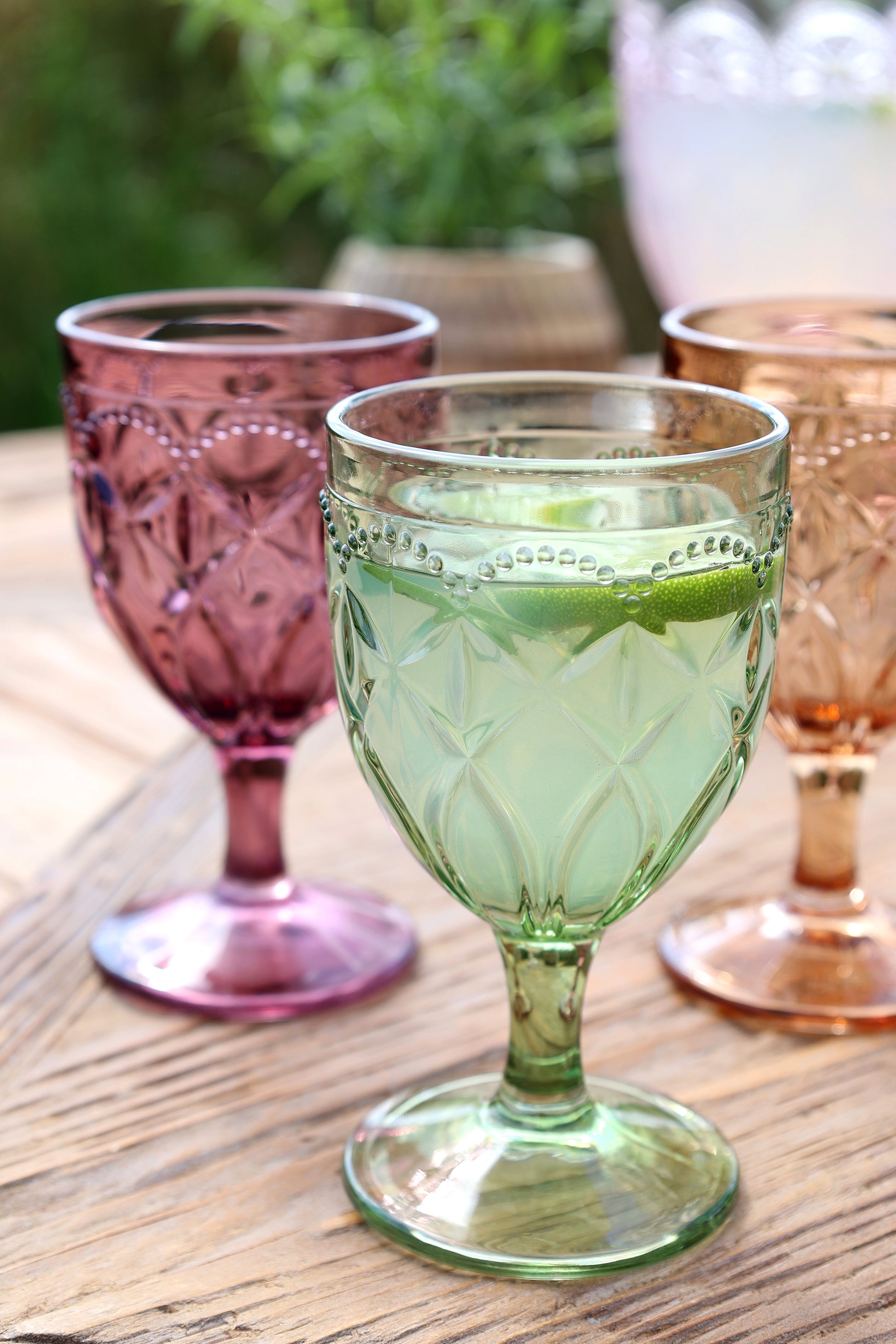 Calice acqua con decoro in rilievo disponibile in sei colori, della linea Saint Emilion di Chic Antique, perfetto per qualsiasi occasione.