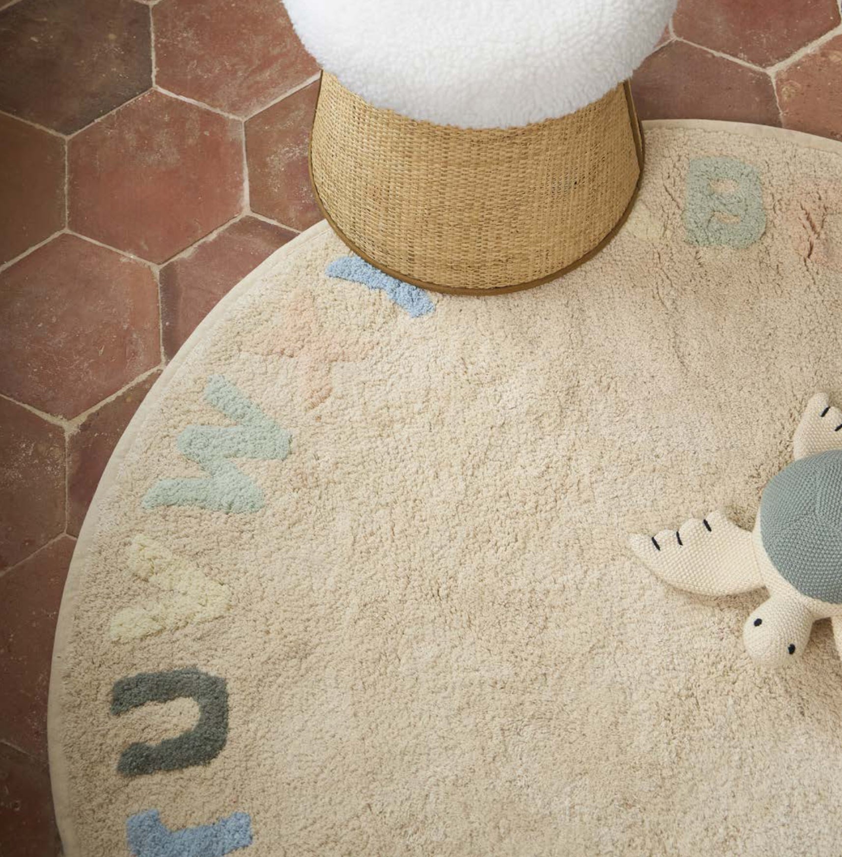 Tappeto beige con lettere della collezione Famille di Jardin d' Ulysse.