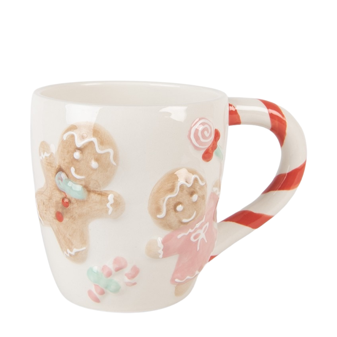 Questa tazza Pan di Zenzero con manico, non è solo un oggetto d'uso, ma un bellissimo articolo decorativo che aggiunge un tocco giocoso alla tua tavola o cucina.