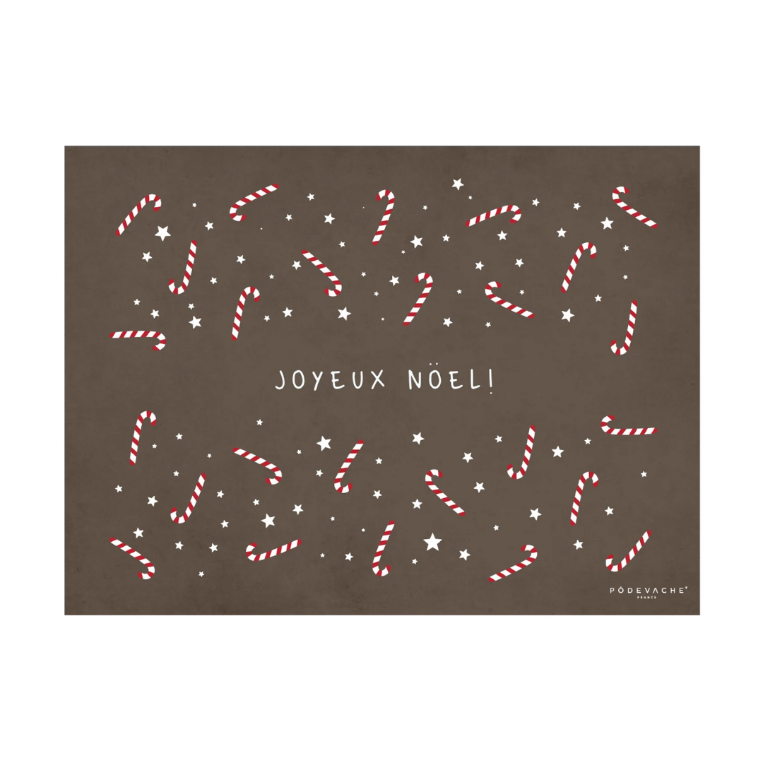 Elegante tovaglietta in vinile di Podevache in color orzo stampata con tanti candy cane e la scritta Joyeux Noel, per rendere la tua tavola indimenticabile, festosa e raffinata, perfetta per il periodo natalizio o anche in qualsiasi altra occasione speciale.