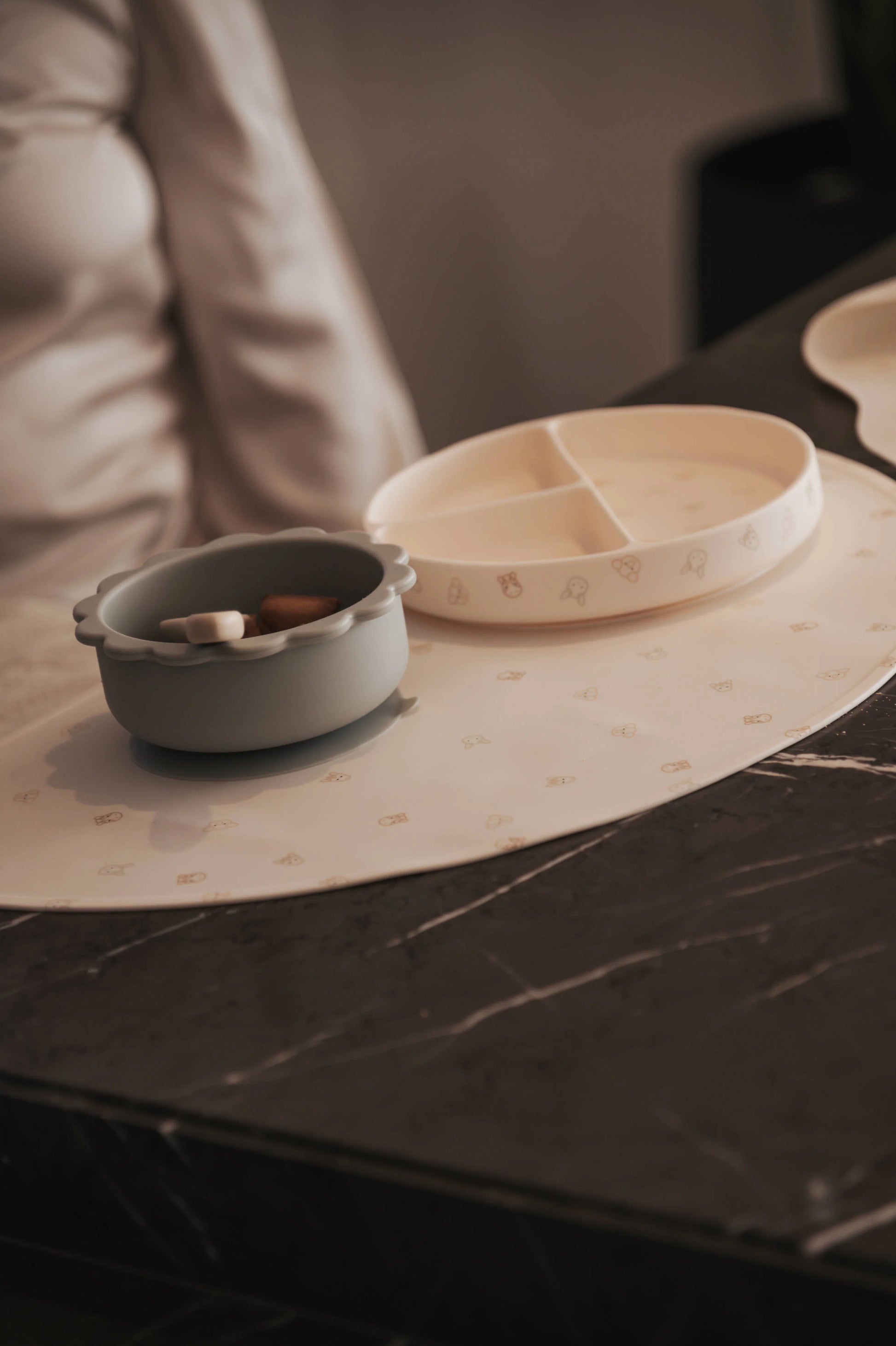 Tovaglietta in 100% silicone ideale per il momento della pappa con divertenti disegni sul davanti, ideale come regalo per un bimbo alla moda!