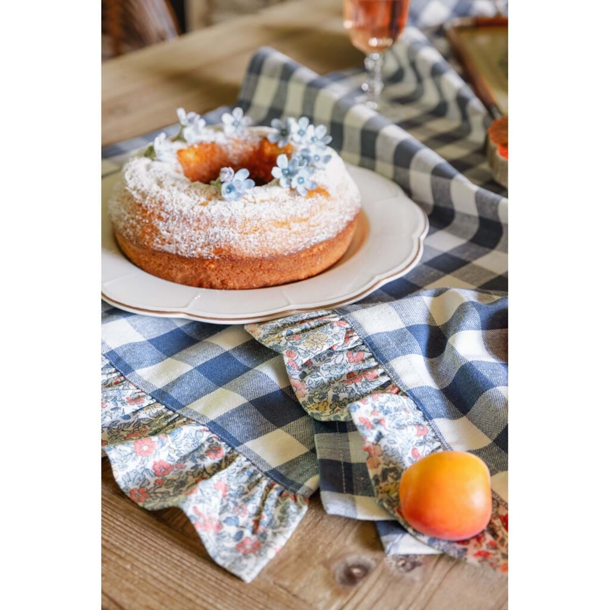 Tovaglietta cerata Vichy con gala 5 cm decorata da deliziosi fiorellini colorati, della Linda Collection di Blanc Mariclò, ispirata dallo stile Country.