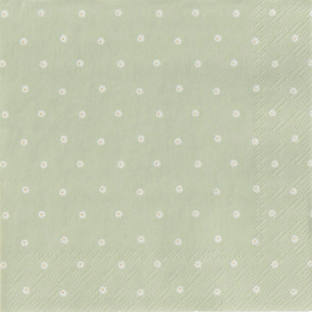Confezione di tovaglioli monouso con fiorellini bianchi e base verde chiaro, di Ib Laursen, 12,5 x 12,5 cm piegati.