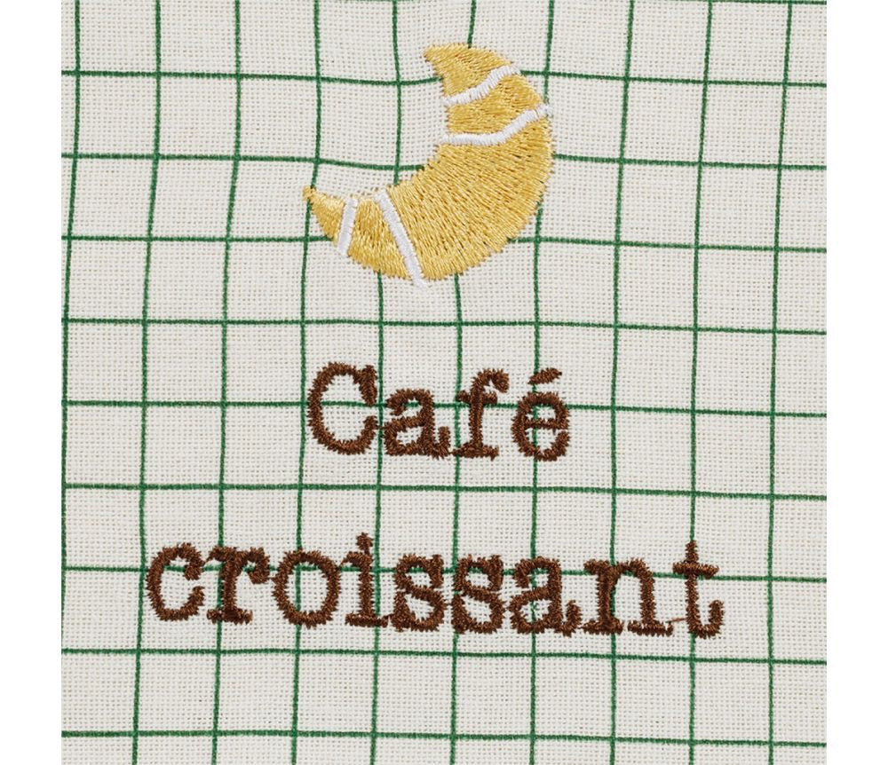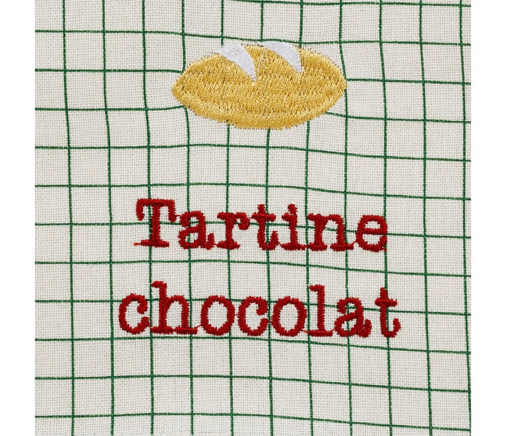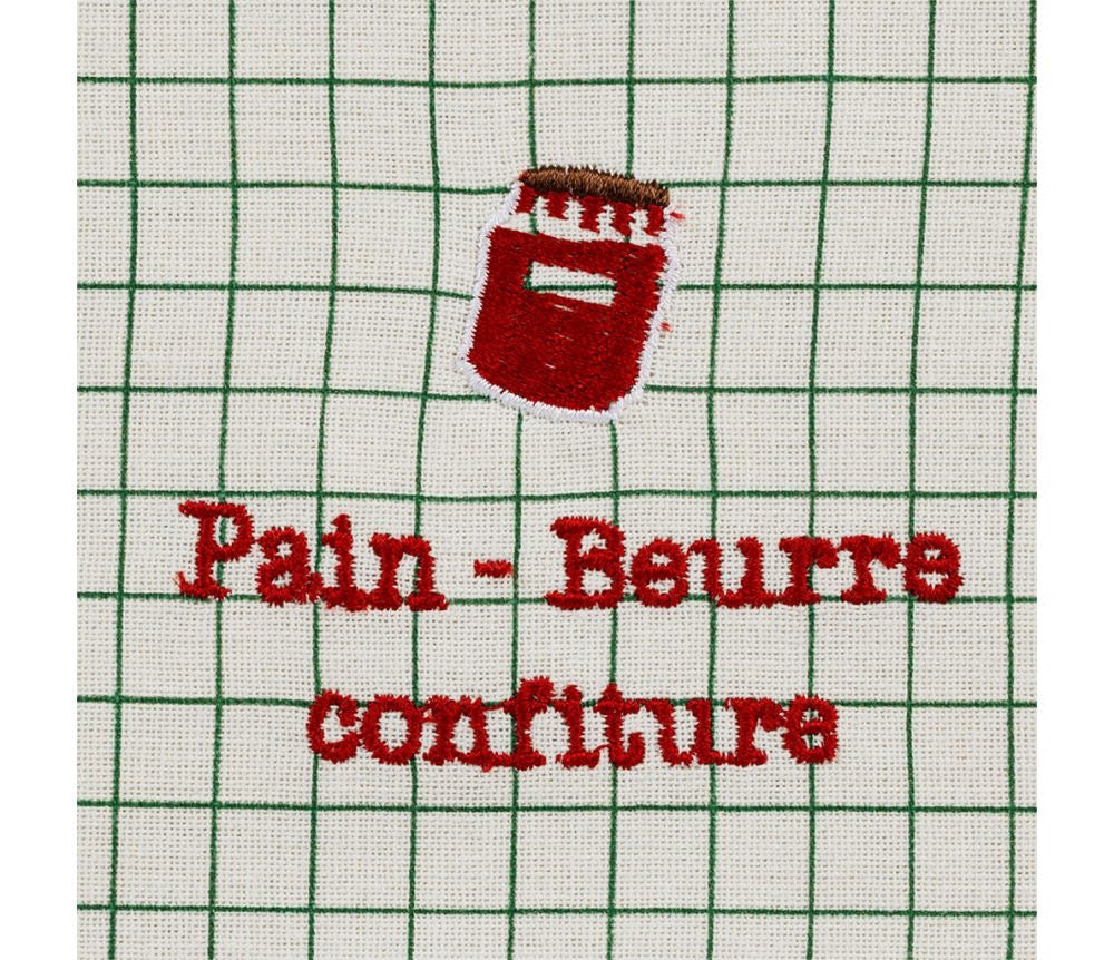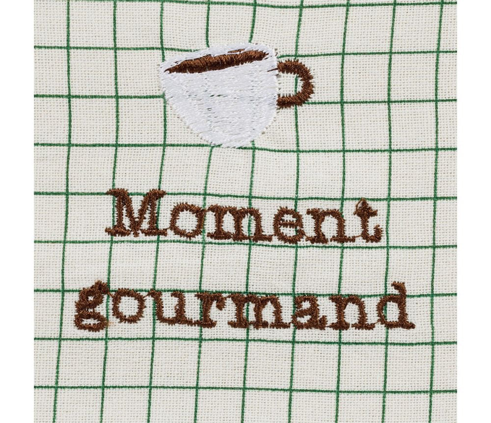 Set 4 tovaglioli a quadri verdi, con ricamo, della collezione Reveil Gourmand di Jardin d' Ulysse.