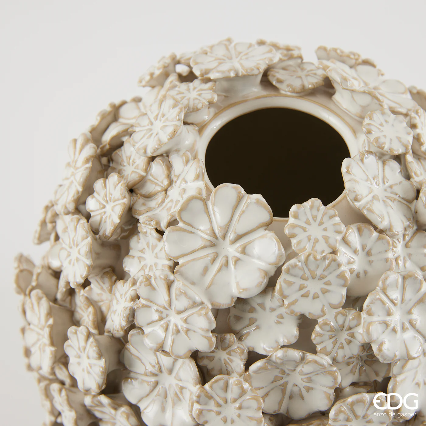 Elegante e raffinato vaso portafiori in colore avorio, con in rilievo tantissimi quadrifogli, di produzione artigianale.