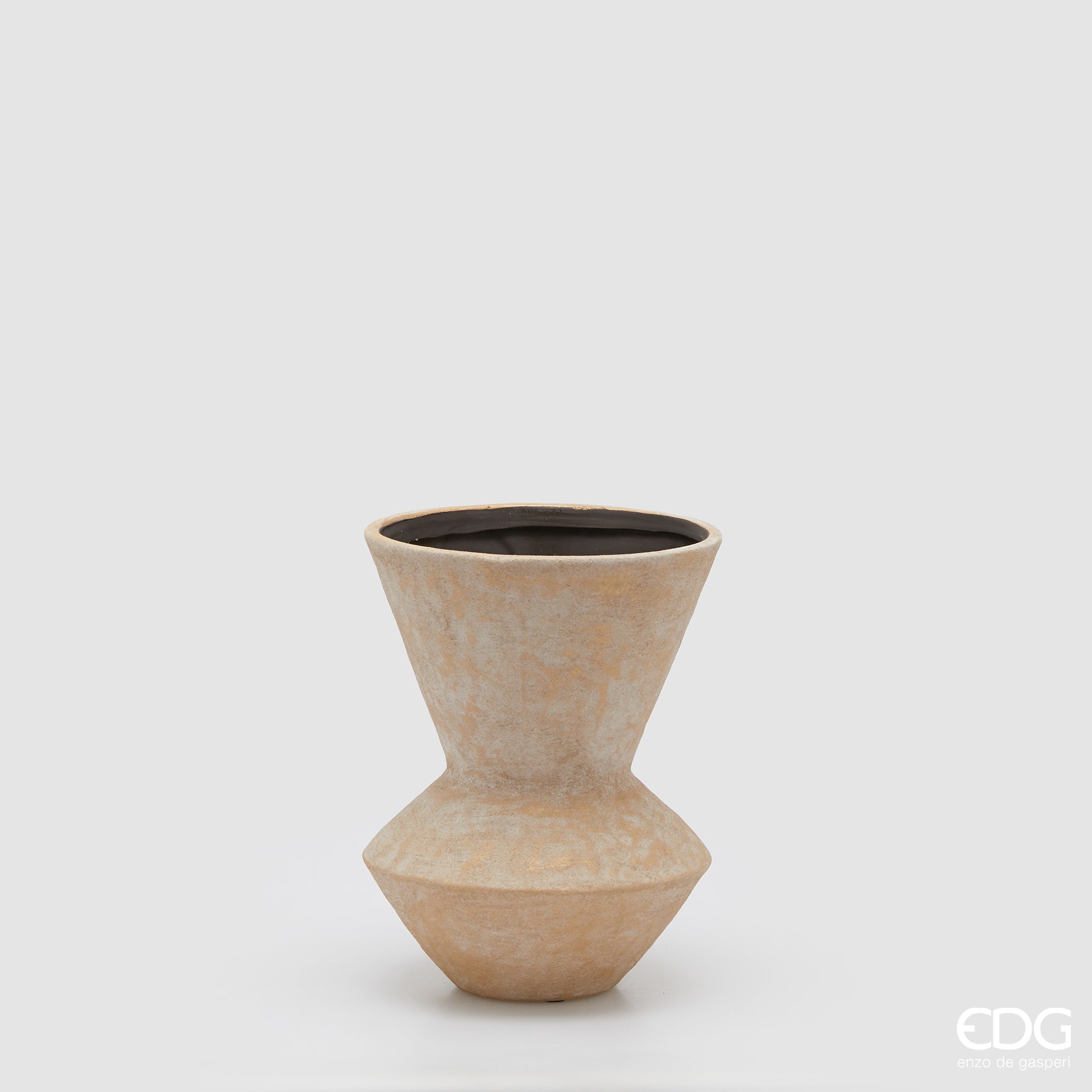 Vaso in colore light gold, dalla forma geometrica e dallo stile contemporaneo, di Enzo De Gasperi.