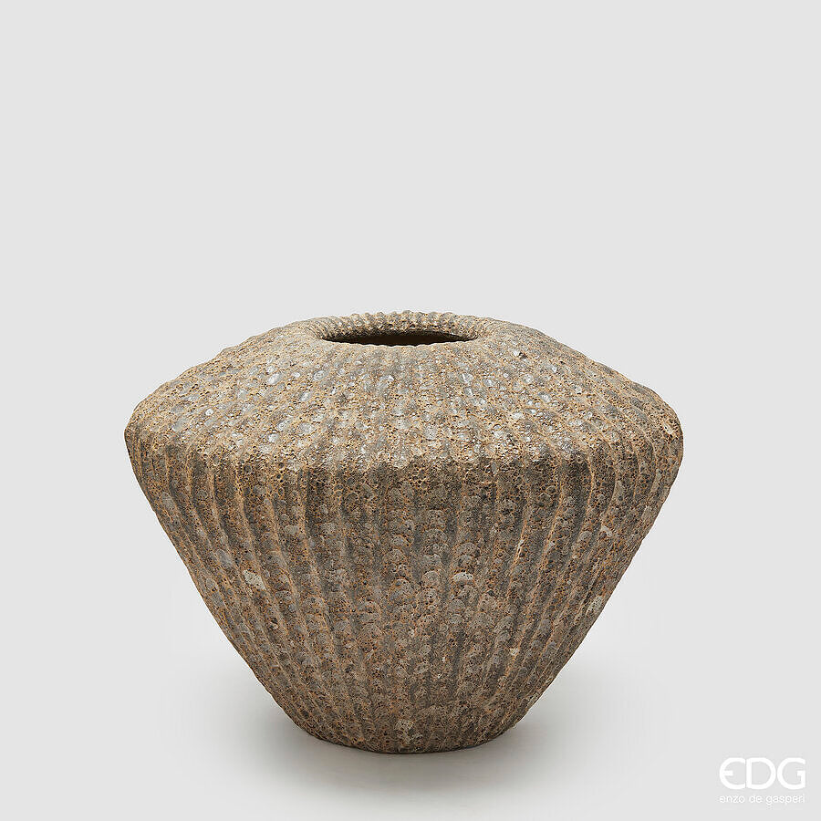 Elegante e raffinato vaso svasatomcon foro alla base, in colore marrone, dalle grandi dimensioni, di produzione artigianale.